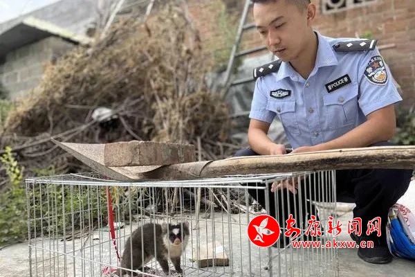 當(dāng)日中午,呂河派出所接到群眾報警稱,“在其家中鐵籠里關(guān)了一只像果子貍的野生動物,請求幫助。”接警后,值班民警迅速帶隊前往處置。到達現(xiàn)場后,民警看到了這只“不速之客”,是一只灰褐色皮毛的小動物,臉似狐,嘴似豬,花白面,時不時上躥下跳,身體狀況還不錯。民警經(jīng)過仔細比對和觀察,并經(jīng)林業(yè)部門工作人員確認,發(fā)現(xiàn)該動物并非果子貍,而是一只鼬獾,屬于國家三級保護動物。