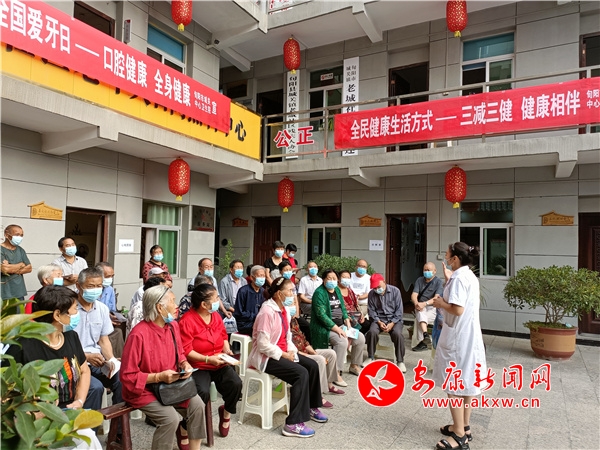“叔叔,請問您什么時(shí)間刷牙,怎么刷的?”城關(guān)中心衛(wèi)生院劉醫(yī)生通過提問的方式走進(jìn)老人身邊,向老人們宣講健康口腔知識,用通俗易懂的語言教會老人們正確刷牙的方法,鼓勵(lì)老人們每半年進(jìn)行口腔檢查一次,如有口腔問題要及時(shí)發(fā)現(xiàn)、及時(shí)治療,使口腔無氣味,生活有滋味,健康有品味。