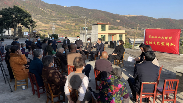 報(bào)告會(huì)后,安康市委宣講團(tuán)還深入白柳鎮(zhèn)老龍溝村,與群眾面對(duì)面互動(dòng)交流。旬陽文藝宣講隊(duì)在現(xiàn)場(chǎng)表演節(jié)目對(duì)口快板《二十大精神指航向》《禮贊旬陽頌黨恩》、二重唱《黨的二十大精神領(lǐng)航程》等節(jié)目,將黨的二十大精神直觀、生動(dòng)地展現(xiàn)在群眾面前,讓基層宣講沾泥土、接地氣,推動(dòng)黨的二十大精神走進(jìn)千家萬戶。