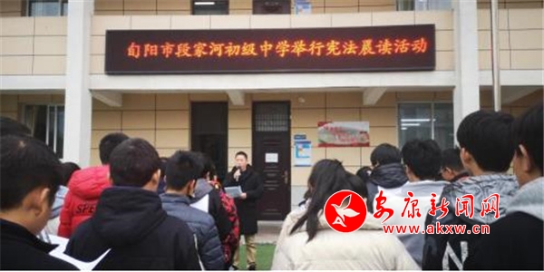 學(xué)校里,開(kāi)展憲法晨讀,全體師生共同參與,同步跟讀憲法條款,讓學(xué)生通過(guò)學(xué)習(xí)憲法的基本原則和基本知識(shí),感受憲法精神,體悟憲法威嚴(yán),在校內(nèi)形成“積極宣傳憲法、尊崇憲法、維護(hù)憲法,弘揚(yáng)憲法精神,樹(shù)立憲法權(quán)威,增強(qiáng)法治觀念”的新風(fēng)尚。JW5安康新聞網(wǎng)