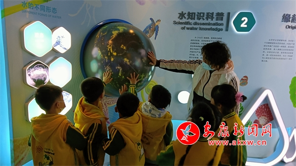 小朋友們走進(jìn)水文化館,立即被神奇的“生命之源”所吸引,精致的浮雕、科技感濃重的電子屏幕等展項(xiàng)都牢牢讓小朋友們注目觀(guān)看。通過(guò)觀(guān)看水文化科普系列動(dòng)漫宣傳視頻,使小朋友們近距離體驗(yàn)到水文化的魅力和水利科技科普。解說(shuō)員積極和小朋友互動(dòng),通過(guò)現(xiàn)場(chǎng)問(wèn)答、操作互動(dòng)電子屏等多種方式,讓孩子及家長(zhǎng)們了解了我國(guó)的水歷史、水狀況等內(nèi)容,更加清楚地了解關(guān)于漢江和旬河的知識(shí)。同時(shí)引導(dǎo)小朋友們樹(shù)立從小“愛(ài)水、惜水、節(jié)水”意識(shí),倡導(dǎo)規(guī)范用水、合理用水,用實(shí)際行動(dòng)讓節(jié)約用水成為一種新時(shí)尚。