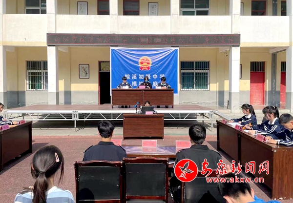 本網(wǎng)訊(通訊員 唐鬲)4月19日,隨著一聲清脆的法槌聲響起,一起以侵害健康權(quán)和名譽(yù)權(quán)案為藍(lán)本的模擬法庭審理在旬陽(yáng)市棕溪初級(jí)中學(xué)操場(chǎng)正式開始。13名學(xué)生分別扮演審判長(zhǎng)、人民陪審員、書記員等角色,從宣讀法庭紀(jì)律、被告人到庭,辯護(hù)人進(jìn)行辯護(hù)、證人出庭作證、合議庭合議、宣讀判決......讓師生們感受法庭審理案件的流程,讓大家對(duì)我國(guó)民事審判制度有更直觀地了解,對(duì)司法權(quán)威有更貼切的認(rèn)識(shí)。