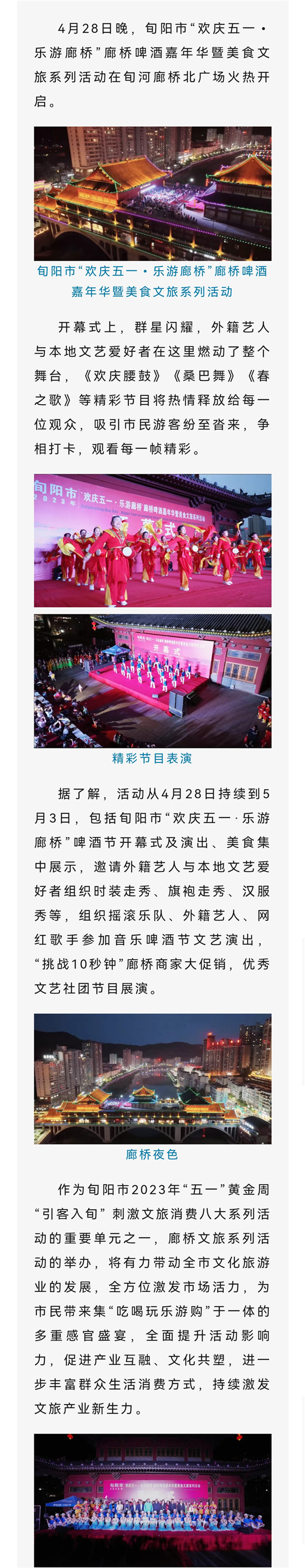 旬陽市“歡慶五一·樂游廊橋”廊橋啤酒嘉年華暨美食文旅系列活動火熱開啟