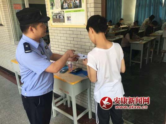 安康新聞網(wǎng)訊(通訊員 宋章蘭)6月28日,中考第一天,旬陽縣公安局組織民警在旬陽中學(xué)考點執(zhí)勤。臨開考前,在考場外執(zhí)勤的交警大隊民警將一張準(zhǔn)考證交到考場內(nèi)執(zhí)……