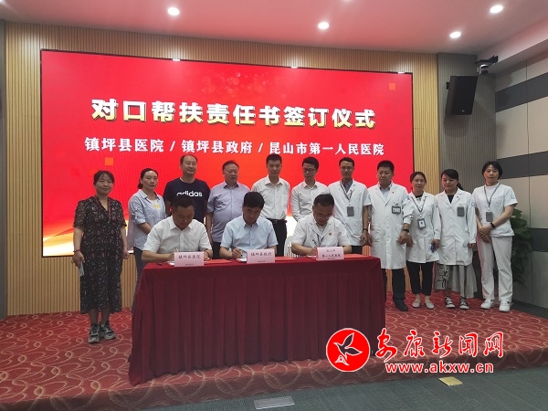 本網(wǎng)訊(通訊員 杜波兒 楊明榮)根據(jù)國家衛(wèi)生計生委等5部門《關(guān)于印發(fā)加強(qiáng)三級醫(yī)院對口幫扶貧困縣縣級醫(yī)院工作方案的通知》以及《關(guān)于開展2019-2020年蘇陜醫(yī)院對口幫扶工作的通知》(陜衛(wèi)醫(yī)發(fā)〔2019〕52號)的文件要求,為深入貫徹落實(shí)江蘇、陜西省委、省政府關(guān)于蘇陜對口幫扶工作,5月25日,鎮(zhèn)坪縣委常委、副縣長蔡小安率鎮(zhèn)坪縣衛(wèi)健局、縣醫(yī)院赴江蘇昆山市第一人民醫(yī)院對接對口支援工作,并簽署了對口支援責(zé)任書。昆山市衛(wèi)健委副主任朱敏等相關(guān)領(lǐng)導(dǎo)參加活動并發(fā)表講話。昆山市第一人民醫(yī)院、鎮(zhèn)坪縣衛(wèi)健局、縣醫(yī)院、疾控中心相關(guān)人員負(fù)參加簽字儀式。
