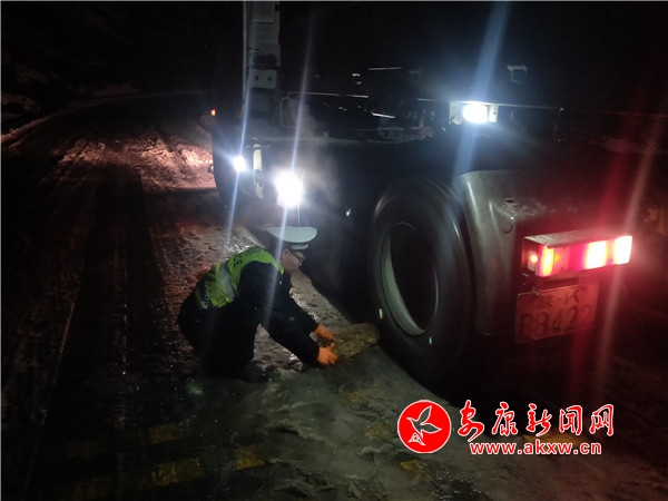 1月6日至8日鎮(zhèn)坪持續(xù)大到暴雪天氣,雞心嶺路段因海拔較高,積雪結(jié)冰嚴(yán)重,導(dǎo)致30余輛大型貨車滯留。鎮(zhèn)坪交警及時(shí)上山疏導(dǎo)交通,對(duì)發(fā)生緊急情況的車輛進(jìn)行救援,并對(duì)未采取防滑措施的車輛進(jìn)行勸返,截至1月8日上午11時(shí)交警仍然在該路段進(jìn)行救援工作。(圖文/趙榮鵬)JxD安康新聞網(wǎng)