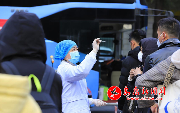 上午8點,帶著行李、佩戴口罩的返崗人員們齊聚在縣中心廣場。在該縣人社局工作人員的組織下,員工們有序地依次經(jīng)過體溫檢測、身份核實、個人健康狀況查驗、安全檢查,踏上返崗復工復業(yè)的旅程。