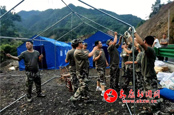 這支隊(duì)伍到達(dá)現(xiàn)場后,立即組織轉(zhuǎn)移受災(zāi)群眾、轉(zhuǎn)移物資、搭建帳篷......他們的到來極大地增強(qiáng)了受災(zāi)群眾的信心,軍民一心,團(tuán)結(jié)抗災(zāi),一場緊急而有序的搶險行動迅速展開。