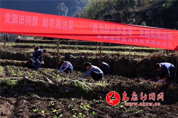 本網(wǎng)訊(通訊員 歐佩)11月13日,鎮(zhèn)坪縣市場(chǎng)監(jiān)管局黨委結(jié)合“我為群眾辦實(shí)事”實(shí)踐活動(dòng),組織全系統(tǒng)40余名黨員干部利用周末時(shí)間到村開(kāi)展“黨旗田間飄,助農(nóng)栽油菜”主題活動(dòng),凝聚合力、發(fā)揮作用,為油菜種植生產(chǎn)保駕護(hù)航。