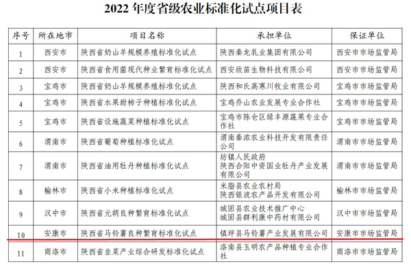 本網(wǎng)訊(通訊員 李東昇 李秦鄂)10月24日,陜西省市場監(jiān)管局發(fā)布了2022年度省級農(nóng)業(yè)標(biāo)準(zhǔn)化試點(diǎn)項(xiàng)目,由鎮(zhèn)坪縣市場監(jiān)管局推薦,鎮(zhèn)坪縣馬鈴薯產(chǎn)業(yè)發(fā)展有限公司承擔(dān)的馬鈴薯良種繁育標(biāo)準(zhǔn)化試點(diǎn)項(xiàng)目榜上有名。據(jù)悉,此次全省獲批的項(xiàng)目僅有11個。該項(xiàng)目也是安康市2022年度唯一一個省級農(nóng)業(yè)標(biāo)準(zhǔn)化試點(diǎn)項(xiàng)目。