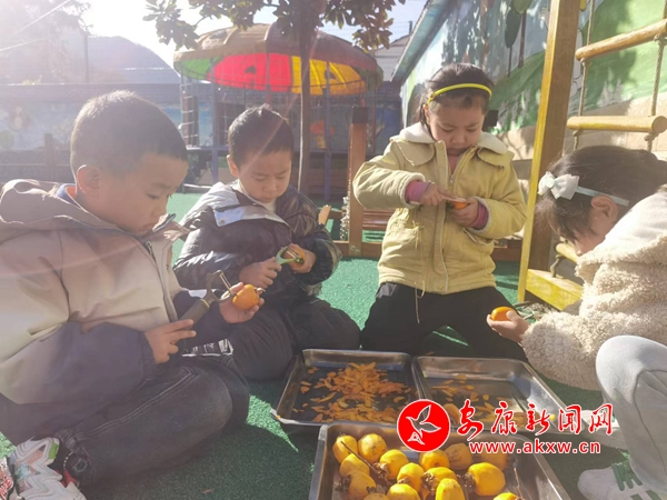 孩子們把柿子帶回班級(jí),親手制作柿餅,把柿子洗一洗,柿皮削一削,棉繩繞一繞,一串串的柿子掛在樹梢上,期待著盡快吃到甜甜的柿餅。孩子們還用畫筆畫出了心中的“柿”界,深刻感受到了秋天的美好和豐收的喜悅。他們還給作品取了很多美好寓意的名字:幸福滿袋、“柿柿”如意、萬“柿”勝意、“柿全柿美”等。