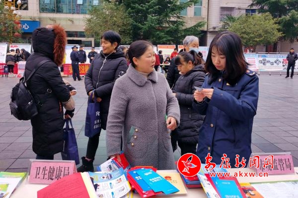啟動儀式結束后,32個相關部門圍繞“弘揚憲法精神,建設法治鎮(zhèn)坪”的宣傳主題,按照統(tǒng)一安排,在鎮(zhèn)坪縣中心廣場集中開展宣傳活動。在做好憲法宣傳的同時,鎮(zhèn)坪縣市場監(jiān)管局結合自身職能職責,通過設立宣傳咨詢臺、懸掛標語、擺放展板、發(fā)放宣傳資料等方式,開展了市場監(jiān)管系統(tǒng)法律法規(guī)的宣傳和咨詢活動,大力宣傳《食品安全法》《藥品管理法》《消費者權益保護法》《特種設備安全法》等法律法規(guī)知識,積極向廣大群眾發(fā)放宣傳資料,熱情耐心地向咨詢?nèi)罕娦v食品藥品安全、偽劣產(chǎn)品鑒別等法律法規(guī)知識,并告知群眾一些消費注意事項,提高群眾的識假辨假能力和依法維權意識。