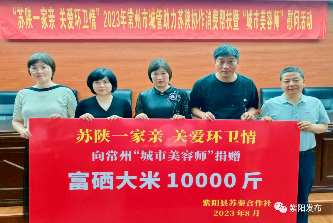 活動上,紫陽縣蘇秦農(nóng)產(chǎn)品專業(yè)合作社向常州市環(huán)衛(wèi)工人捐贈了10000斤紫陽大米作為慰問品,并與10家企事業(yè)單位簽訂了消費幫扶產(chǎn)品購銷意向協(xié)議。