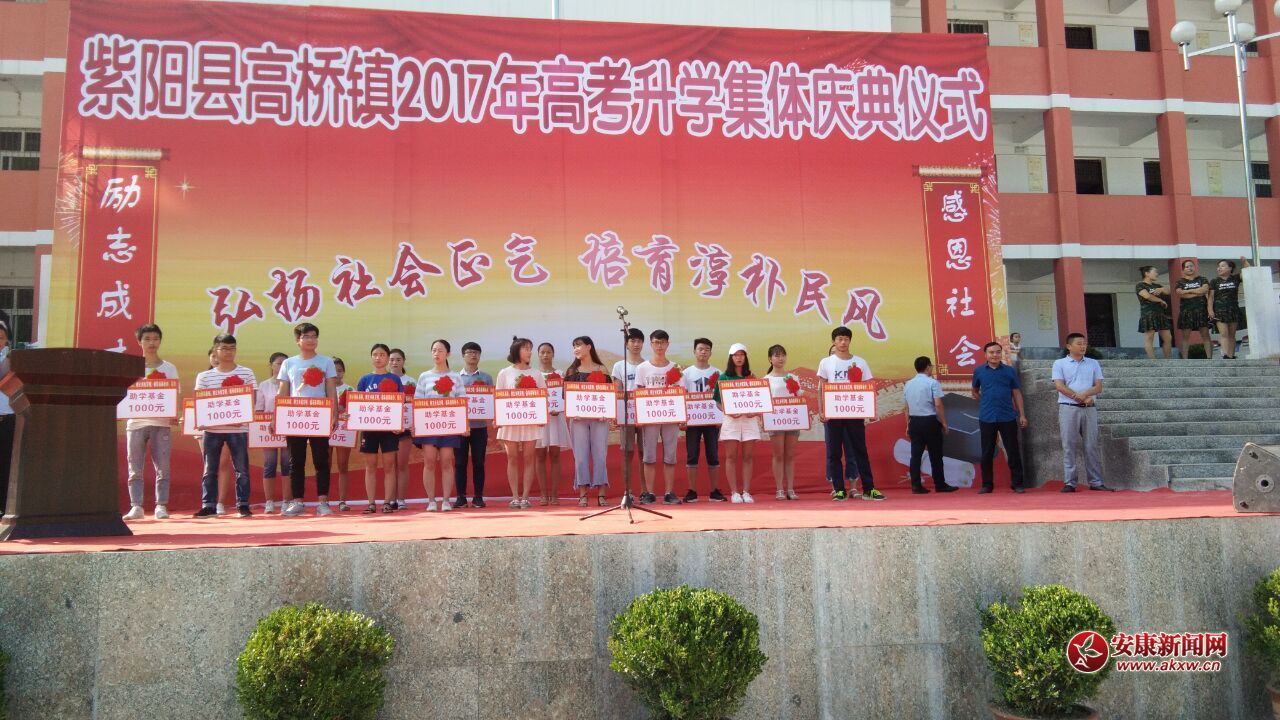 安康新聞網(wǎng)(通訊員 劉成軍)為切實貫徹落實黨的十八大以來關于優(yōu)良黨風帶政風促民風的部署要求,進一步優(yōu)化民風引領社會文明進步,弘揚優(yōu)秀傳統(tǒng)文化、厚植發(fā)展軟實力,大力推進“誠、孝、儉、勤、和”新民風建設。8月2日早晨,由紫陽縣高橋鎮(zhèn)黨委、政府牽頭,在高橋中學操場隆重舉行了該鎮(zhèn)首場2017年高考升學集體慶典儀式。鎮(zhèn)領導班子成員、全鎮(zhèn)今年的準大學生、家長、親友、同學、教師及社區(qū)居民共同參加了慶典儀式。