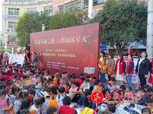 紫陽(yáng)縣文旅廣電局、縣圖書(shū)館、新華書(shū)店紫陽(yáng)分公司舉行“重溫革命之路·點(diǎn)燃閱讀星火”慶祝建黨100周年閱讀推廣活動(dòng),200余名幼兒參加了閱讀分享活動(dòng),并提供200余本黨史主題圖書(shū)和50本電子圖書(shū)供市民免費(fèi)閱讀。