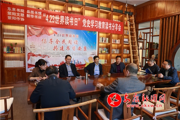 紫陽(yáng)縣文聯(lián)、紫陽(yáng)東來(lái)書(shū)院、縣作協(xié)等單位在東來(lái)書(shū)院開(kāi)展“世界讀書(shū)日”黨史學(xué)習(xí)教育讀書(shū)分享會(huì),廣大書(shū)友分享了百年黨史的閱讀體會(huì)和深切感悟,激發(fā)“學(xué)百年黨史,守初心情懷”的讀書(shū)情懷,營(yíng)造“以讀書(shū)求新知,以讀書(shū)強(qiáng)素質(zhì)、以讀書(shū)傳文明、以讀書(shū)筑夢(mèng)想”的全民閱讀氛圍。