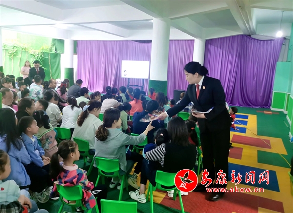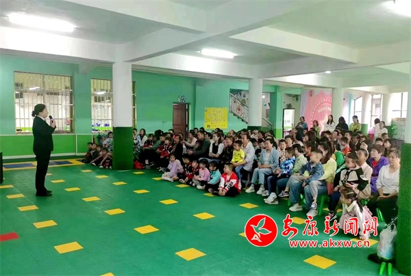 紅椿法庭從小朋友的年齡特點(diǎn)出發(fā),通過(guò)播放動(dòng)畫(huà)片《小豬佩奇》的形式向小朋友們宣講法律知識(shí),并將動(dòng)畫(huà)故事與現(xiàn)實(shí)案例相結(jié)合,從動(dòng)畫(huà)中提煉法律知識(shí),通過(guò)看、問(wèn)、答的形式讓小朋友們?cè)跉g樂(lè)輕松的氛圍中增長(zhǎng)了法律知識(shí),F(xiàn)場(chǎng)以法徽為切入點(diǎn),通過(guò)觸摸觀察、問(wèn)答互動(dòng)等方式,從法徽的組成部分向小朋友們介紹了法徽的含義以及“法是什么”“法院又是干什么的”,讓小朋友們零距離地感受到了“法”。此外,還通過(guò)宣講和發(fā)放宣傳手冊(cè)等方式向到場(chǎng)的家長(zhǎng)們普及了有關(guān)“監(jiān)護(hù)人責(zé)任”方面的法律知識(shí),讓學(xué)生家長(zhǎng)充分認(rèn)識(shí)到保障未成年人合法權(quán)益需要大家共同努力。