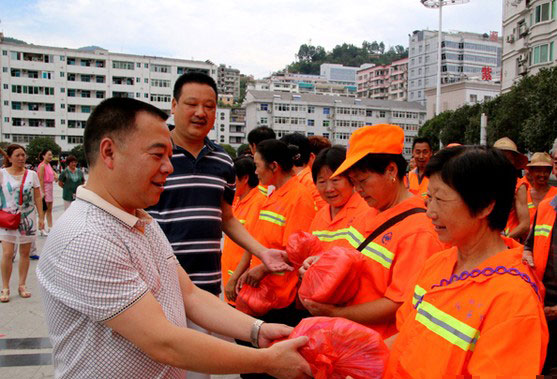 紫陽為一線環(huán)衛(wèi)工人“送清涼”