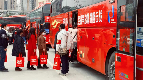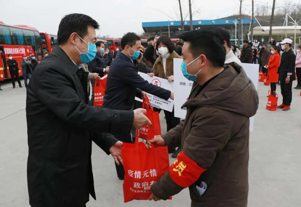 郭青在歡送儀式講話(huà)中指出,受新冠肺炎疫情影響,很多企業(yè)一度停工停產(chǎn)、復(fù)工延長(zhǎng),加之省際客運(yùn)班線(xiàn)尚未完全開(kāi)通,致使我市大量外出務(wù)工人員無(wú)法及時(shí)返崗就業(yè)。群眾的揪心事就是政府的操心事,群眾的困難就是政府的責(zé)任,通過(guò)開(kāi)通點(diǎn)對(duì)點(diǎn)直達(dá)包車(chē)等方式,使廣大外出務(wù)工人員能夠放心外出、安全返崗,早一點(diǎn)實(shí)現(xiàn)致富增收,家人少一點(diǎn)路途牽掛。