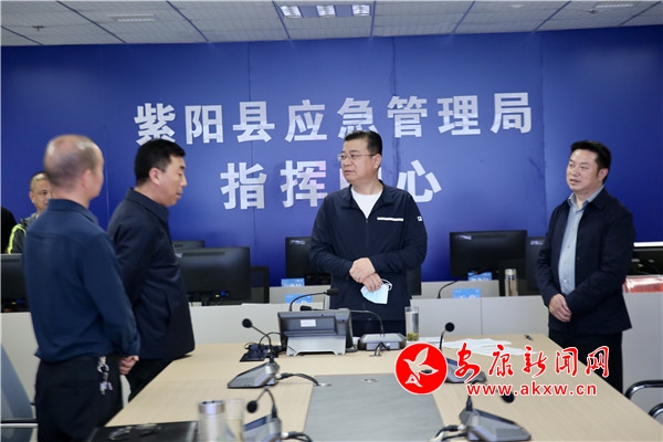 在紫陽(yáng)港碼頭廣場(chǎng)和縣應(yīng)急管理局指揮大廳,高晶華聽取了紫陽(yáng)防范應(yīng)對(duì)本輪強(qiáng)降雨和防汛防滑情況匯報(bào)。他強(qiáng)調(diào),縣鎮(zhèn)村要把生命至上舉過(guò)頭頂,密切關(guān)注雨情,靈通聯(lián)動(dòng)信息,壓實(shí)“人盯人,防搶撤”各方責(zé)任,確保應(yīng)撤必撤、撤必安全,妥善解決撤離群眾食宿保障。