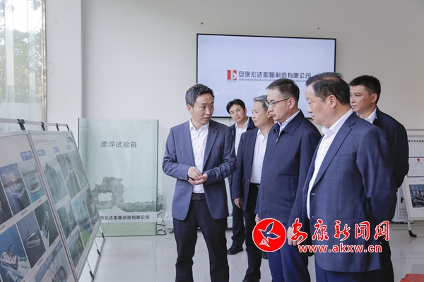 王浩(右3)在安康宏達(dá)船舶制造有限公司了解企業(yè)生產(chǎn)經(jīng)營情況