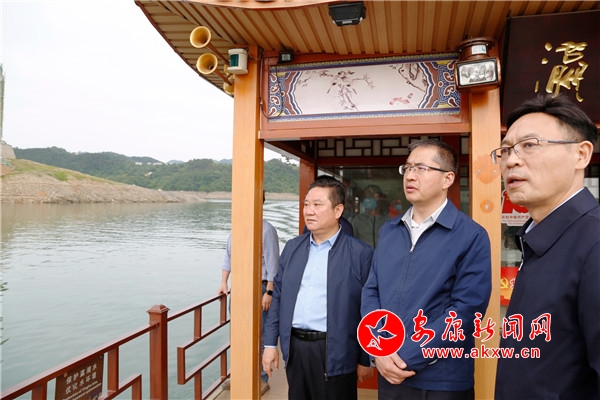 本網(wǎng)訊(記者 吳單)5月15日,代市長王浩在瀛湖生態(tài)旅游區(qū)檢查漢江水質保護工作,調研文旅融合發(fā)展與重點景區(qū)建設情況。副市長周康成參加調研。王浩(右二)在瀛……