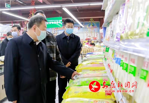(市長武文罡在喜盈門超市南環(huán)路店實(shí)地查看米面等生活必需品供應(yīng)情況)