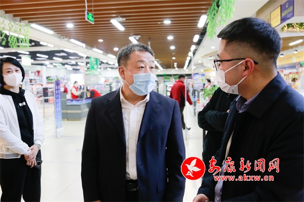在天一城市廣場(chǎng),武文罡實(shí)地查看疫情防控常態(tài)化措施落實(shí)情況,要求各類市場(chǎng)經(jīng)營(yíng)主體必須堅(jiān)決克服麻痹思想,從嚴(yán)落實(shí)重點(diǎn)場(chǎng)所“測(cè)溫、驗(yàn)碼、戴口罩、一米距、常消毒”常態(tài)化疫情防控措施,全力消除各類風(fēng)險(xiǎn)隱患。同時(shí)強(qiáng)調(diào)各級(jí)要加強(qiáng)物資調(diào)運(yùn),備足生活物品,穩(wěn)定市場(chǎng)價(jià)格,確保滿足群眾生產(chǎn)生活需求。