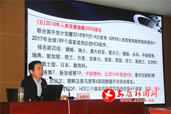 揭牌活動后,趙俊民以“對高質量發(fā)展實現(xiàn)路徑的思考和建議”為主題,緊扣宏觀形勢與省市經濟運行,圍繞高質量發(fā)展的內涵要求和實現(xiàn)路徑,為安康學院師生作經濟形勢專題輔導。趙俊民指出,高質量發(fā)展就是能夠很好滿足人民群眾物質、文化、民主、法治、公平、正義、安全、環(huán)境等方面日益增長的需要,注重平衡、充分發(fā)展,體現(xiàn)新發(fā)展理念的發(fā)展方式。推動高質量發(fā)展,是適應經濟發(fā)展新常態(tài)的主動選擇,是貫徹新發(fā)展理念的根本體現(xiàn),是適應我國社會主要矛盾變化的必然要求,是建設現(xiàn)代化經濟體系的必由之路。
