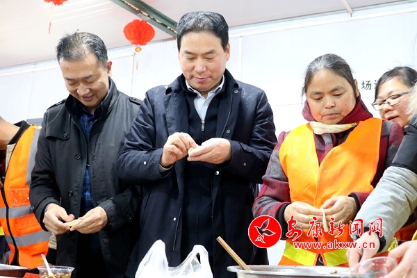 隨后,趙俊民來到項(xiàng)目部職工食堂,與大家一起包餃子、慶佳節(jié)。歡聲笑語中,大家一邊享受美食,一邊與家人視頻連線,大家紛紛表示,一定將市領(lǐng)導(dǎo)的關(guān)懷和問候轉(zhuǎn)化為加快建設(shè)的動(dòng)力,為早日實(shí)現(xiàn)安康人民的藍(lán)天夢(mèng)貢獻(xiàn)力量。8gq安康新聞網(wǎng)