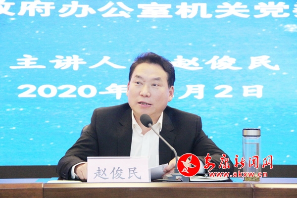 本網(wǎng)訊(記者 艾蓓)12月2日下午,市長趙俊民以普通黨員身份參加市政府辦公室機關(guān)黨委黨員大會,并以《深入學(xué)習(xí)貫徹黨的十九屆五中全會精神爭做新時代追趕超越排頭兵》為題,講授了一堂生動具體的黨課。市委常委、副市長劉建平、殷勇,副市長何邦軍、市政府秘書長陳伍文以普通黨員身份參加活動。