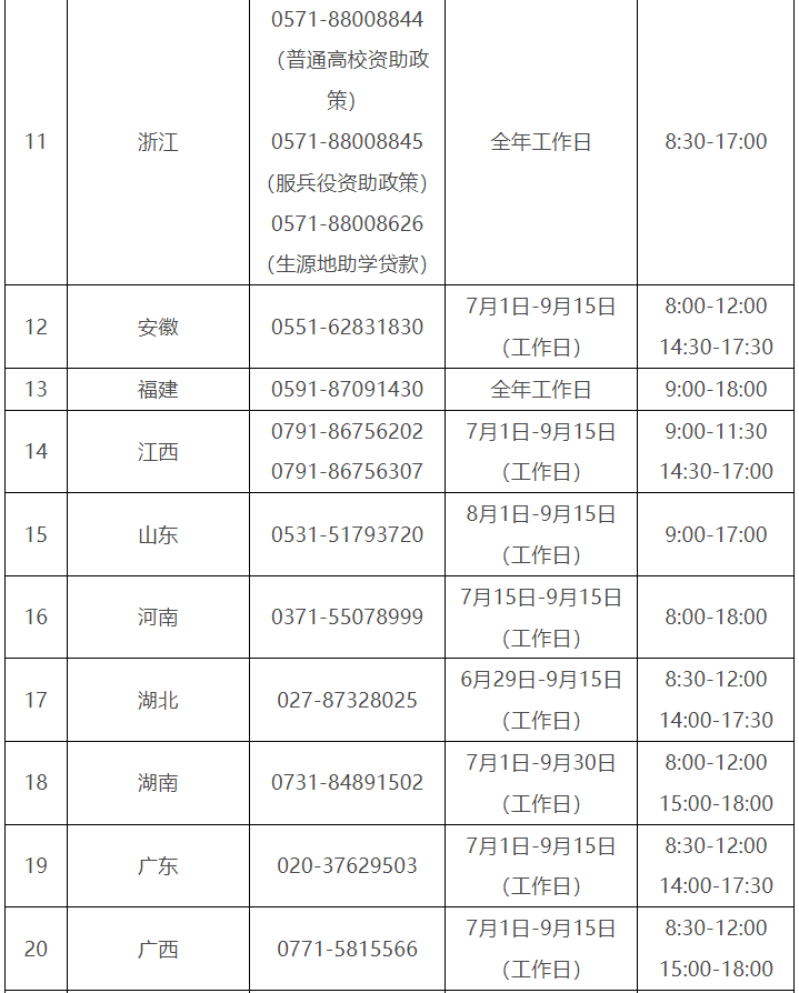 各省(自治區(qū)、直轄市)和中央部門所屬高校同步開通了熱線電話,電話號(hào)碼與開通時(shí)間可查看匯總表。