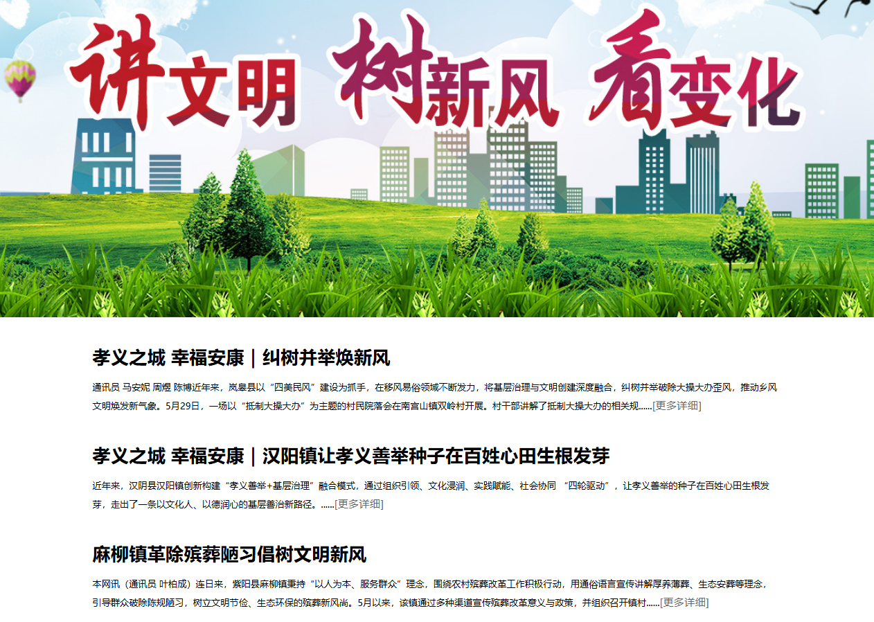 自覺承擔(dān)起舉旗幟、聚民心、育新人、興文化、展形象的使命任務(wù)。堅(jiān)持以人為本,體現(xiàn)人文關(guān)懷,關(guān)注民生問題,反映群眾意見呼聲。發(fā)布了《孝義暖綠都 善舉聚人心——寧陜縣推進(jìn)孝義善舉培育工程側(cè)記》《白河開展集中整治讓“煙火氣”添“文明味”》《八仙鎮(zhèn)鞏固農(nóng)村人居環(huán)境整治成果》等一批代表性稿件。