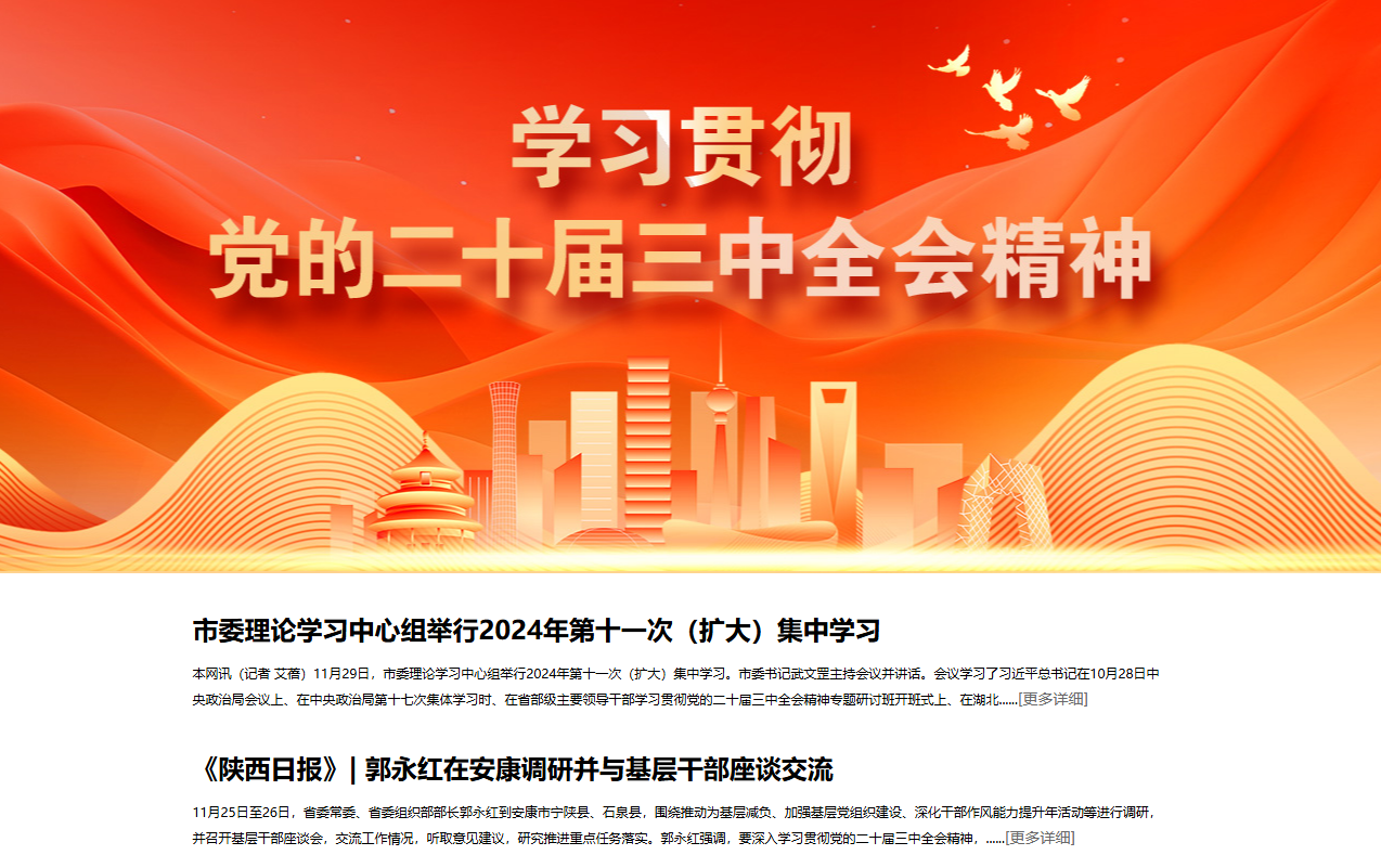 《全市市廳級(jí)領(lǐng)導(dǎo)干部和縣處級(jí)主要領(lǐng)導(dǎo)干部學(xué)習(xí)貫徹黨的二十屆三中全會(huì)精神專題研討班開班》(2024-10-16發(fā)布于安康發(fā)布公眾號(hào))