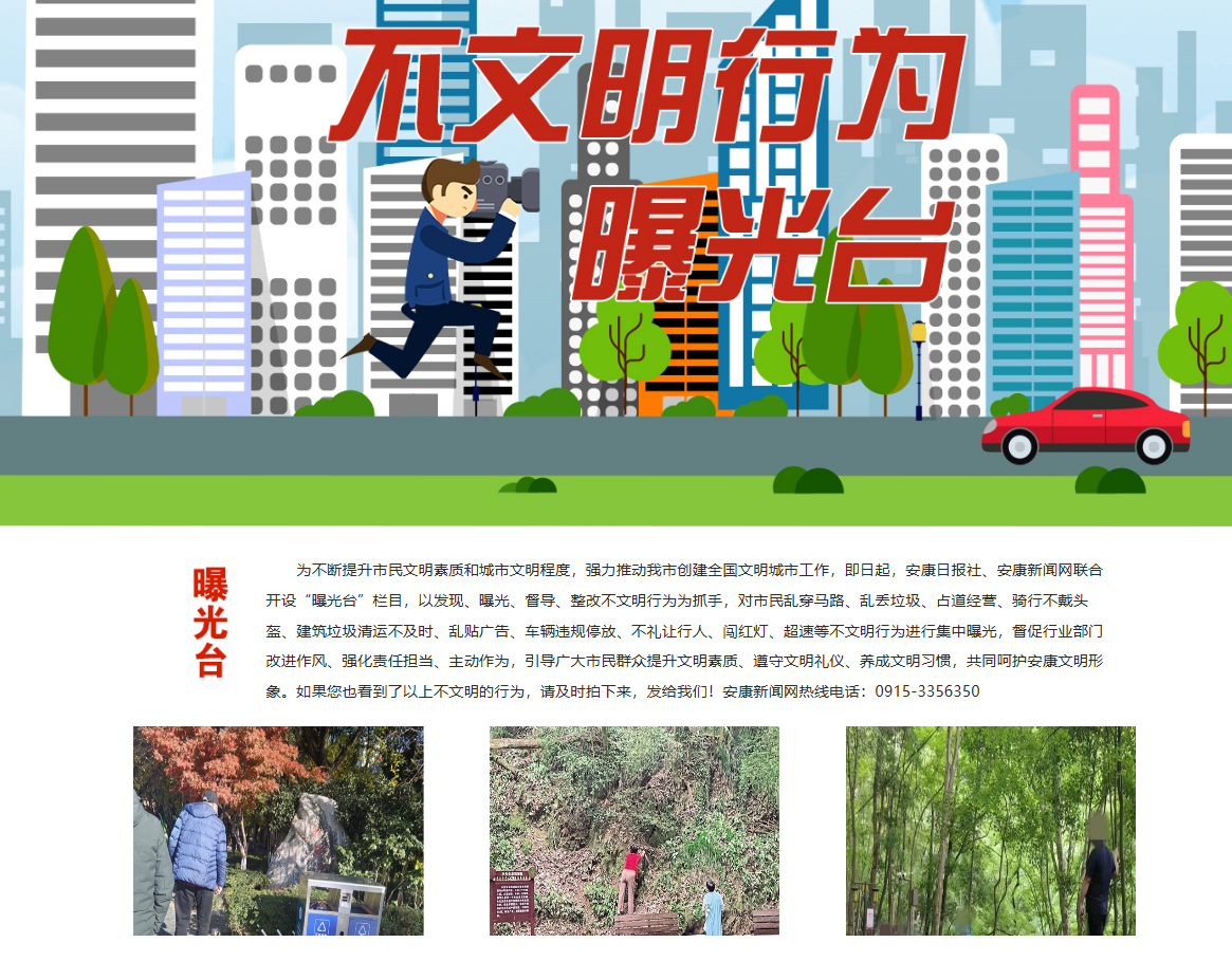 安康新聞網(wǎng)繼續(xù)充分發(fā)揮輿情監(jiān)測(cè)和輿論監(jiān)督作用,以高度負(fù)責(zé)的態(tài)度,及時(shí)監(jiān)測(cè)上報(bào)重大輿情信息。開設(shè)《不文明行為曝光臺(tái)》輿論監(jiān)督專欄,集中曝光身邊的不文明現(xiàn)象、行為,發(fā)布消息報(bào)道19篇,引導(dǎo)市民群眾自覺規(guī)范文明行為,主動(dòng)融入城市文明創(chuàng)建熱潮,為提升市民文明素質(zhì)和城市文明程度貢獻(xiàn)媒體力量,體現(xiàn)地方黨媒的責(zé)任與擔(dān)當(dāng)。