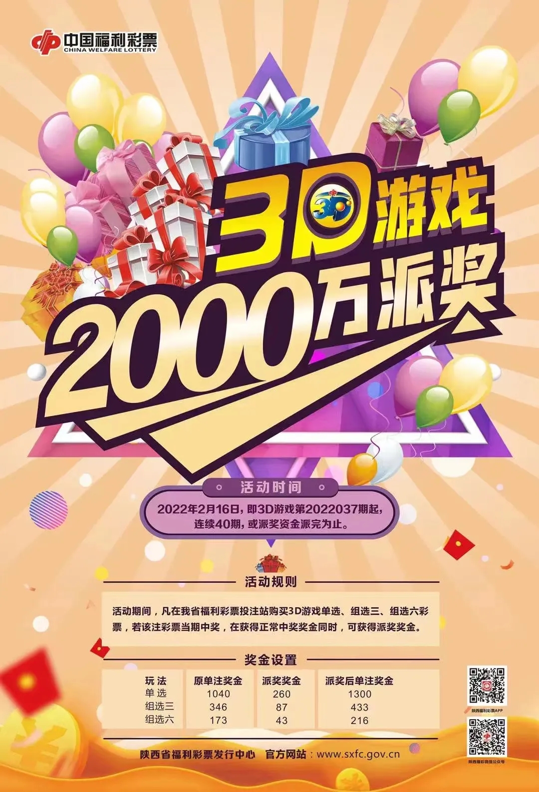 為回饋廣大購彩者對3D游戲的支持和厚愛,省福彩中心決定恢復開展原定于2021年12月25日受疫情影響未能如期開展的3D游戲2000萬元派獎活動。