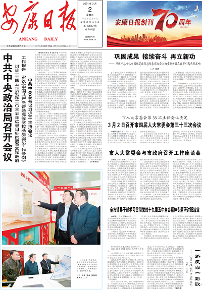 2021年是中國共產黨建黨100周年,是“十四五”規(guī)劃開局之年,是開啟全面建設社會主義現(xiàn)代化國家新征程、向第二個百年奮斗目標進軍之年。站在兩個一百年的歷史交匯處,又恰逢《安康日報》創(chuàng)刊70周年,安康日報全媒體站位主動,守正創(chuàng)新,積極發(fā)揮黨媒應有的作為。
