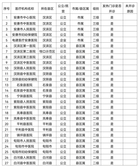 安康市二級以上醫(yī)療機構(gòu)發(fā)熱門診點位
