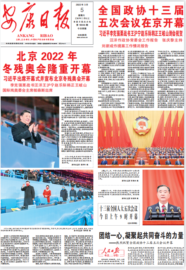 (2022年3月5日安康日?qǐng)?bào)01版“北京2022年冬殘奧會(huì)隆重開(kāi)幕”、“全國(guó)政協(xié)十三屆五次會(huì)議在京開(kāi)幕”)