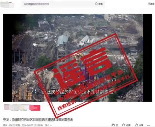 詳情:4月7日、8日,新疆阿克蘇地區(qū)拜城縣先后發(fā)生5.4、5.1級地震。震中位于無人區(qū),目前暫未收到人員傷亡或財產(chǎn)損失報告,當(dāng)?shù)赝ㄓ崱⒐╇、交通正常。但有部分自媒體為博眼球、蹭流量,利用AI智能技術(shù)等手段拼湊網(wǎng)絡(luò)舊圖,發(fā)布拜城地震不實圖文、音視頻等信息,嚴(yán)重誤導(dǎo)網(wǎng)民。阿克蘇地區(qū)互聯(lián)網(wǎng)信息辦公室提醒,對在網(wǎng)上蓄意編造、傳播散布謠言,擾亂公共秩序等違法行為,網(wǎng)信部門將會同公安機(jī)關(guān)依法嚴(yán)厲打擊。(來源:“新疆網(wǎng)絡(luò)辟謠”微信公眾號)