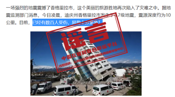 謠言:云南迪慶香格里拉市4.7級(jí)地震中,有數(shù)百人受傷?