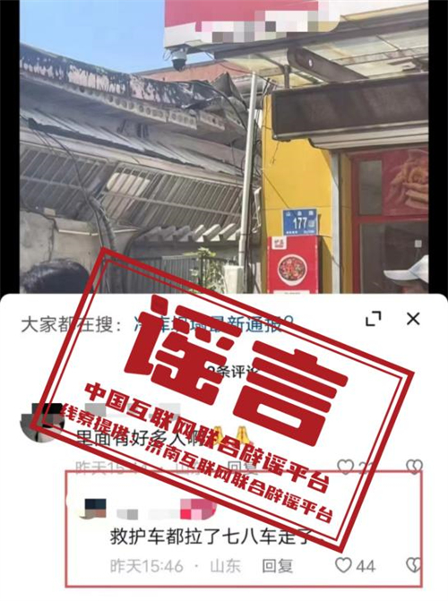 謠言:濟(jì)南一門(mén)店坍塌,救護(hù)車(chē)?yán)似甙塑?chē)?