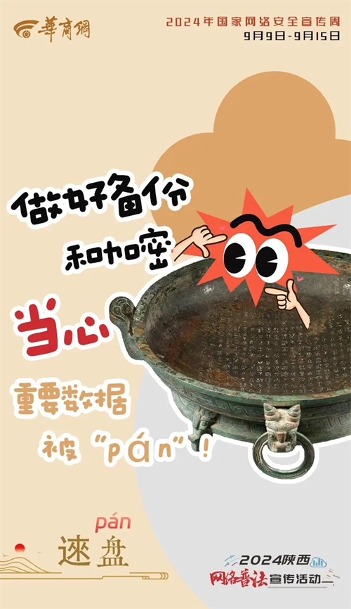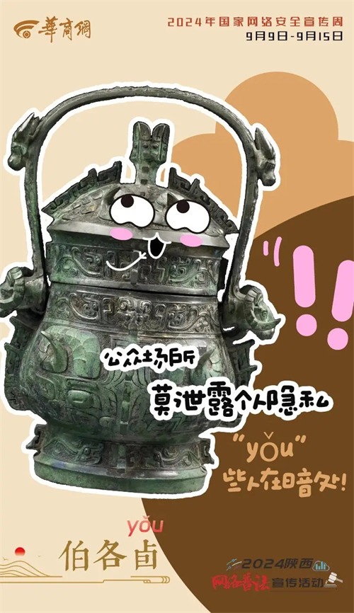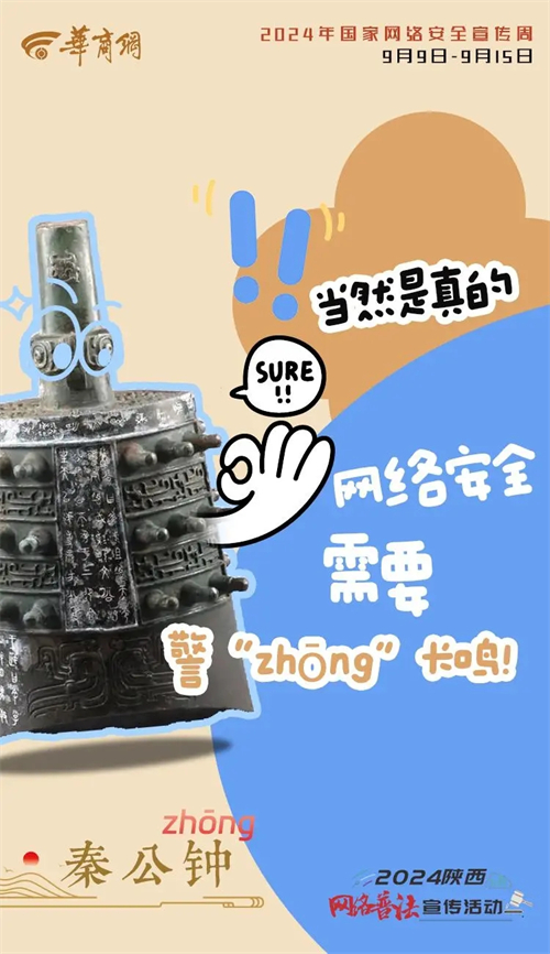9月9日下午,陜西第十一屆國家網(wǎng)絡(luò)安全宣傳周將在寶雞市開幕。寶雞,曾出土無數(shù)青銅國寶,被譽(yù)為“青銅器之鄉(xiāng)”。今天“國寶”有話說,“點(diǎn)醒”你我他→ EBQ安康新聞網(wǎng)