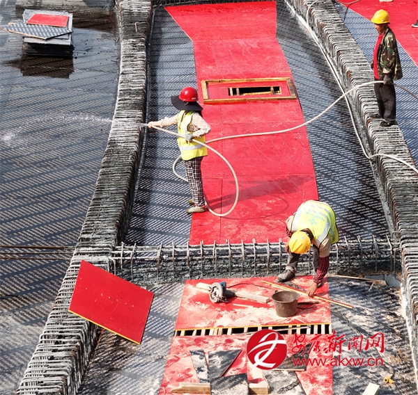 日前,在安康城區(qū)七里溝立交項(xiàng)目施工現(xiàn)場,機(jī)械轟鳴,工人們揮汗如雨。QKV安康新聞網(wǎng)