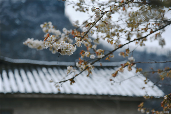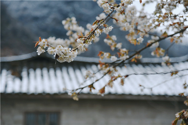 2月25日,石泉縣迎來(lái)了新年的第一場(chǎng)雪,高山處的村莊變得銀裝素裹,農(nóng)家小院旁的櫻花開(kāi)滿枝頭,潔白的櫻花與雪花共舞,為新年增添了更多的樂(lè)趣。(儲(chǔ)招賢 攝)6ag安康新聞網(wǎng)