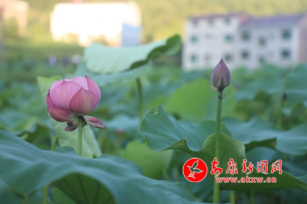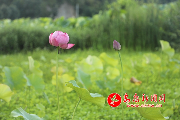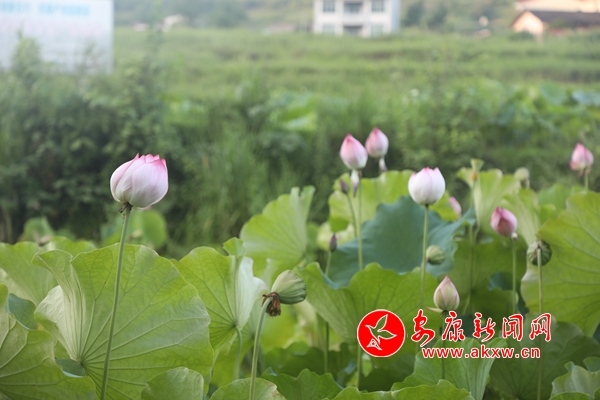 荷葉碧綠,荷花盛開。在七月驕陽的照耀下,伴隨著鳥叫和蟬鳴,漢濱區(qū)沈壩鎮(zhèn)花紅村的灼灼荷花如期而至,與美麗鄉(xiāng)村形成一道靚麗的獨特風景。(鄭時根  攝)zei安康新聞網(wǎng)