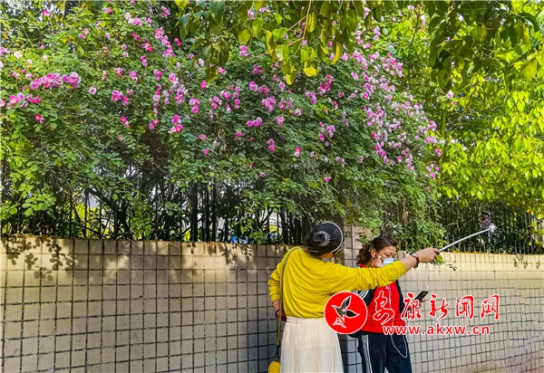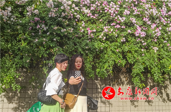 近日,安康東堤外的漢寧宮院墻上的薔薇花盛開,成了安康的網(wǎng)紅打卡地,每天吸引了數(shù)百人到此賞花拍照。(圖文/陳德模)