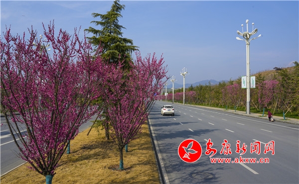 一場淅淅瀝瀝的春雨過后氣溫急劇回升,天氣回暖,伴隨著這大好天氣,安康高新區(qū)沿線的部分道路旁,粉嫩嬌艷的櫻花競相開放。一團(tuán)團(tuán)、一簇簇包裹著整個(gè)枝頭,蜜蜂在花間飛舞。沿路望去,密密匝匝的花朵宛如兩條粉紅色的緞帶在春風(fēng)的吹拂下起舞,在路邊綠色草坪的映襯下更顯妖嬈。(圖文/李俊)PZU安康新聞網(wǎng)