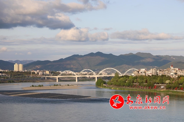 節(jié)逢清明,雨霽初晴。落日熔金,清江如練。天藍若海,流云似鯨。畫中城,城中畫,兩岸青山翠欲滴 ,春色滿城等你來。ㄓ浾 劉淵)