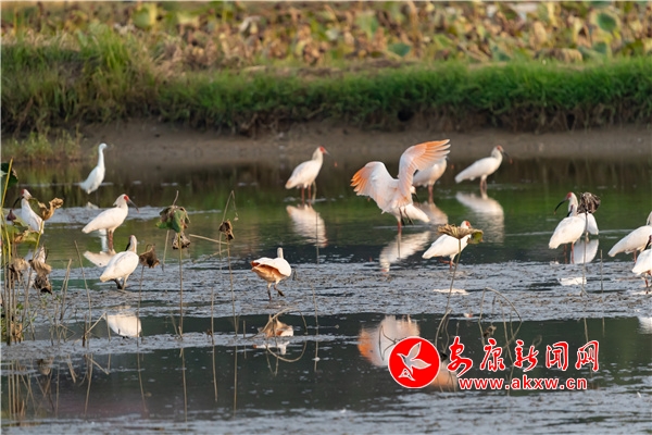 近日,有攝影愛好者在漢陰縣雙乳鎮(zhèn)千畝荷塘景區(qū)拍到50余只朱鹮的曼妙身影。他們時(shí)而悠閑覓食,時(shí)而閑庭散步,時(shí)而展翅高飛,潔白的羽毛,艷紅的頭冠和黑色的長嘴,成為秋日里一道靈動(dòng)的風(fēng)景。